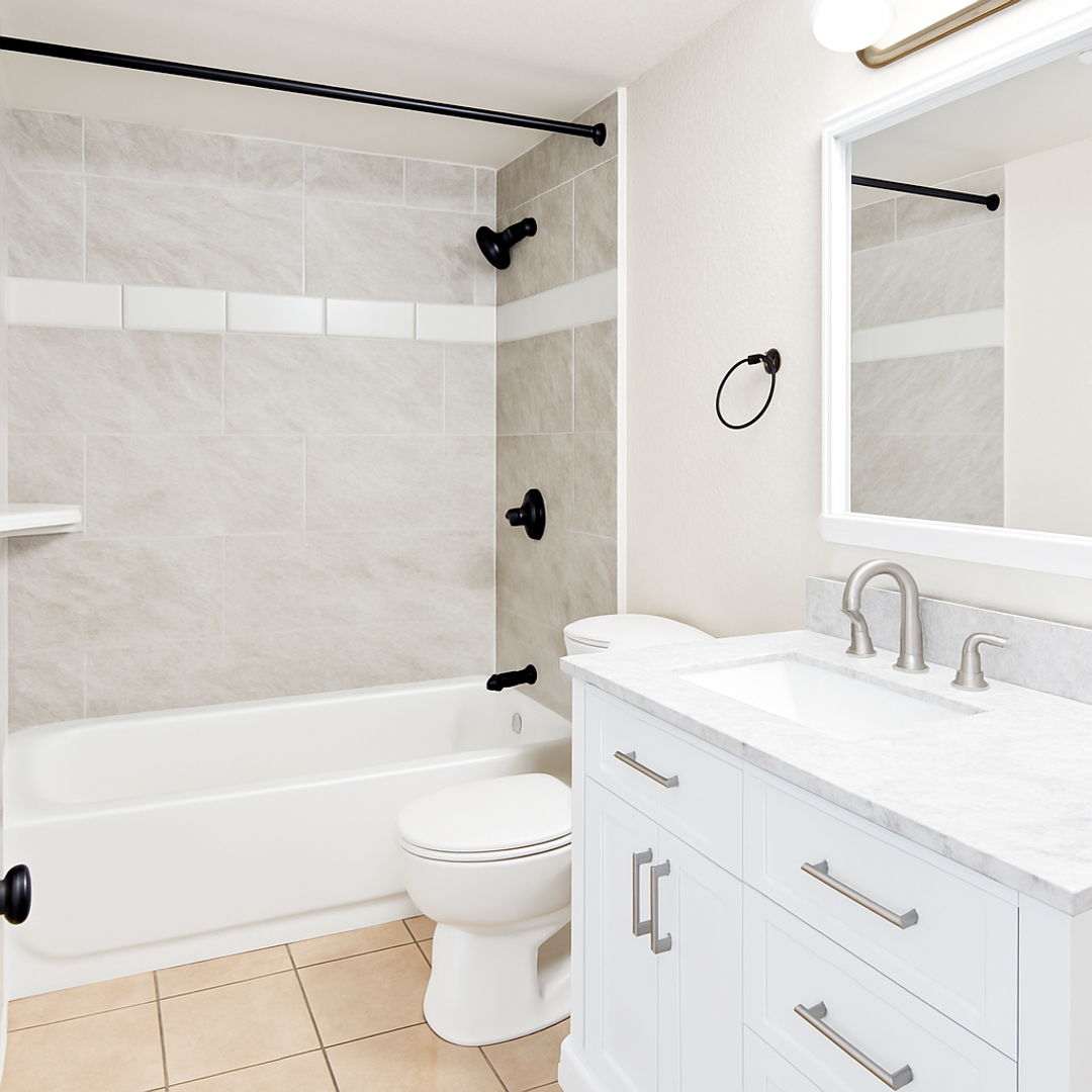 Bathroom with vanity and shower/tub combo